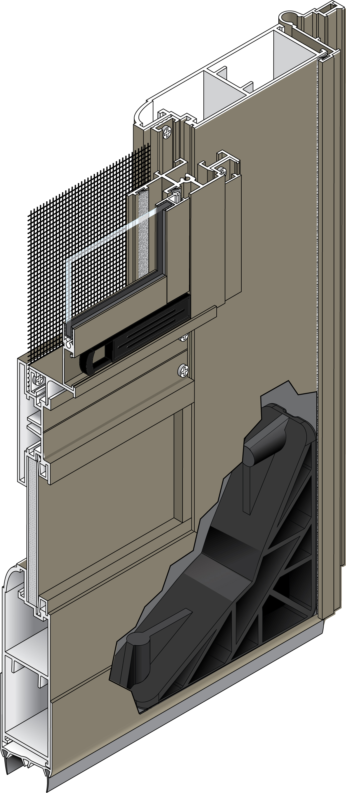 Corrosion-proof corner gussetts enhance structural integrity in the frame. Corner keys provide added support to the glass frame.